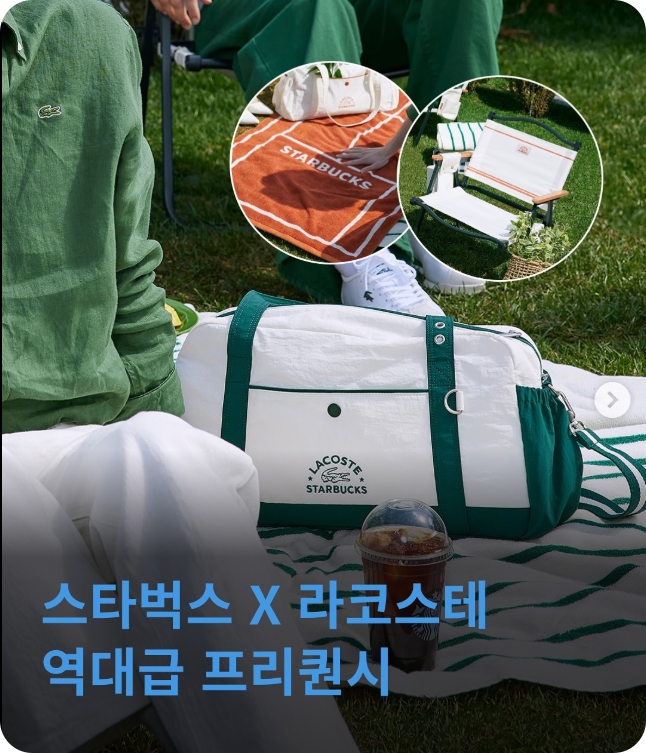 | 스타벅스 라코스테 굿즈 2025 프리퀀시 총정리|한정판 와이드체어·멀티플백 놓치지 마세요! (1) | 2025.05.20 |