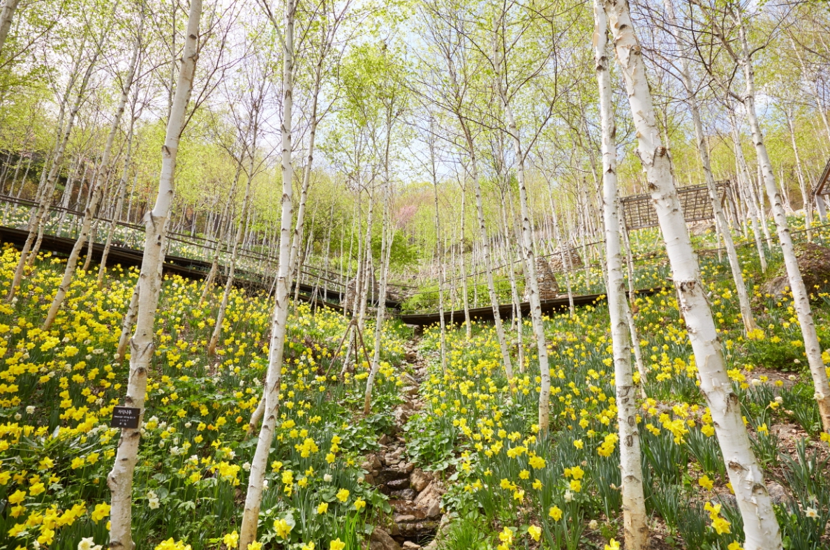 5.3km에 이르는 산책로를 따라 노란 산수유, 복수초, 풍년화 등 봄을 대표하는 다양한 꽃들이 피어납니다. 16개의 테마원에서는 4000여 종의 식물이 각기 다른 빛깔로 방문객의 감성을 자극하며, 남녀노소 누구나 부담 없이 즐길 수 있는 코스가 마련되어 있습니다. 모바일 앱 기반의 도슨트 서비스는 식물과 숲의 이야기를 오감으로 체험할 수 있는 기회를 선사합니다.