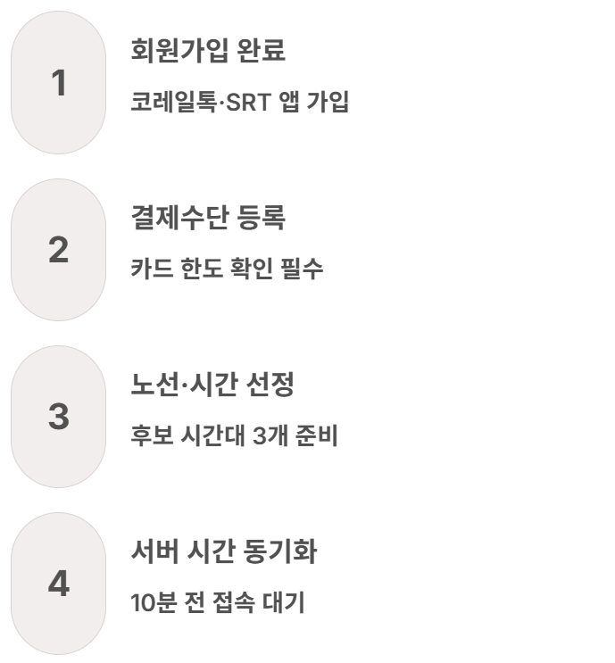 원하는 시간대의 열차를 예매하지 못할 경우를 대비해서, 대체 시간대를 미리 확보해 두는 것도 중요해요. 특히 오전 7 시대 열차는 경쟁이 엄청 치열하니까, 8~9 시대 열차를 백업으로 생각해 두는 거죠.